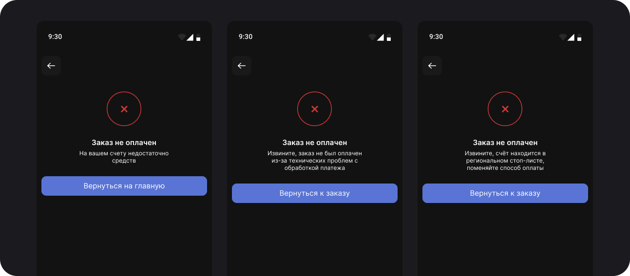Платёжный шлюз позволяет возвращать множество ошибок, которые возникают при оплате. Вот некоторые из них