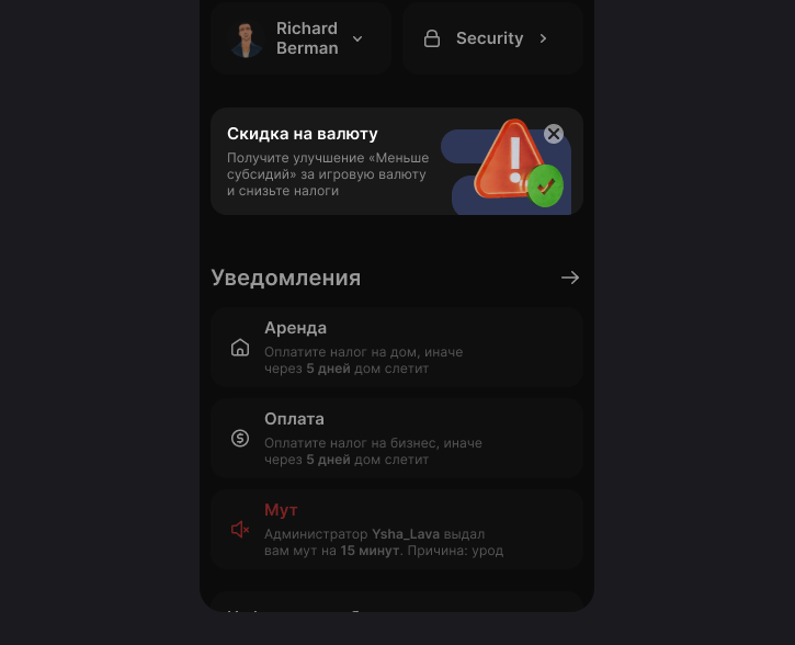 Второе — несколько человек посчитали раздел скидок и акций свалкой. Учитывая то, что не все игроки покупают «прям всё», я решил отказаться от раздела в пользу баннера, который бы обновлялся каждые два часа и индивидуально подбирал акции под пользователя.